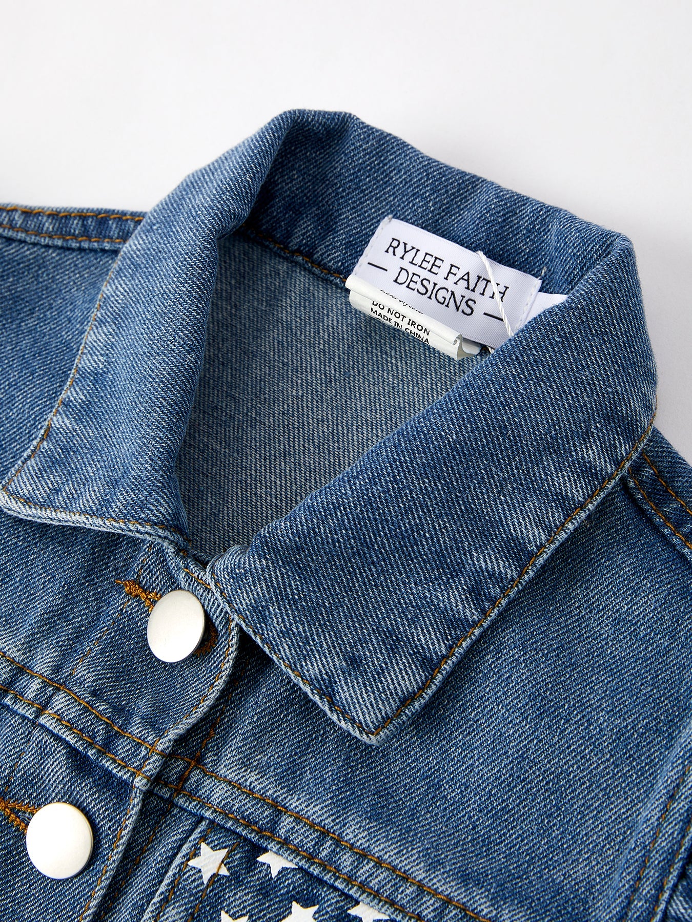 Celebrate the 4th of July in style with our Stars Stripes Denim Vest for girls! Featuring the iconic stars and stripes design, this vest is perfect for any patriotic event. Made with high-quality denim, it's durable and comfortable. Make a statement and show off your love for the USA! 🇺🇸