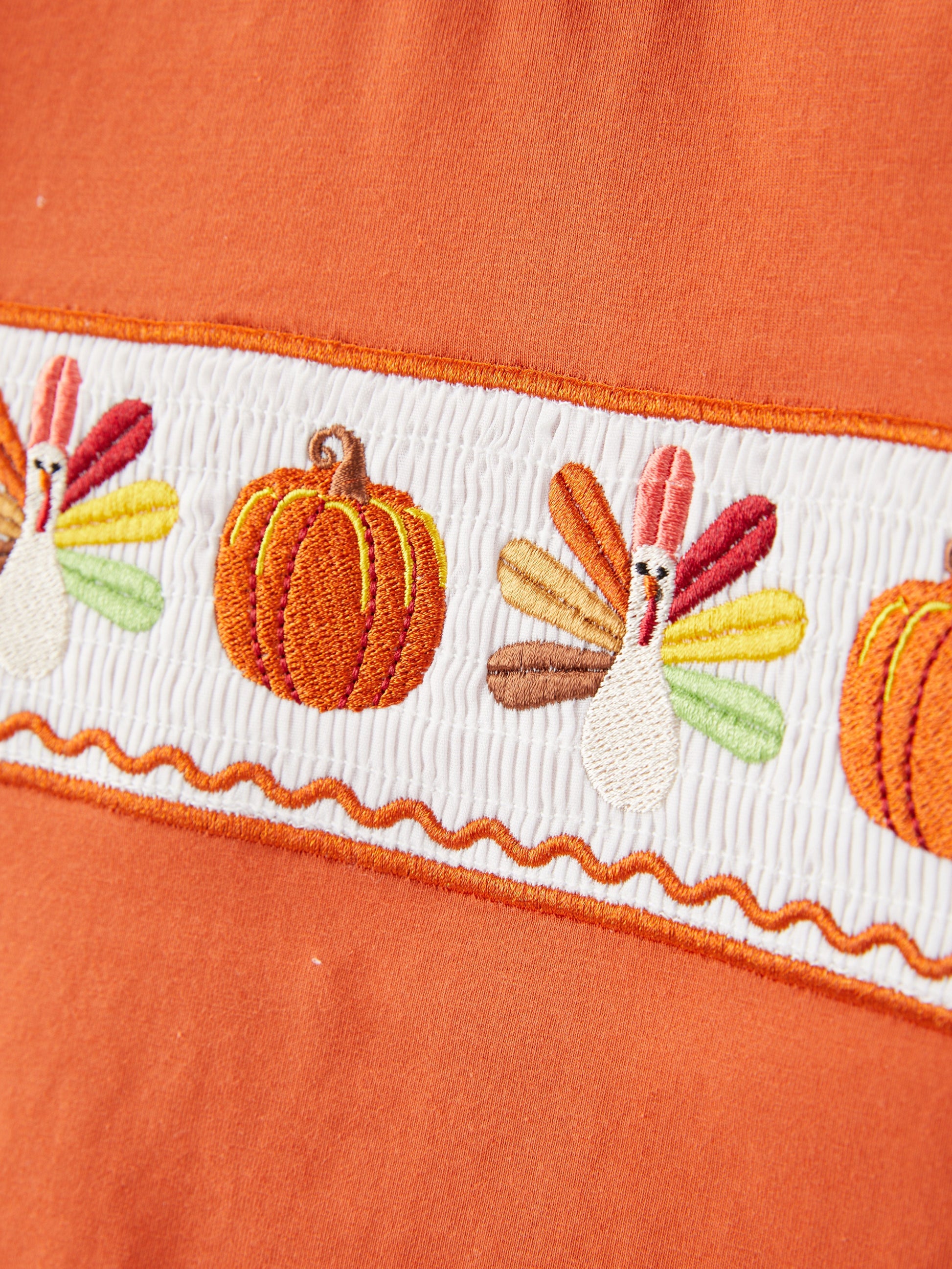 Boys Thanksgiving Smocking Embroidered Plaid Outfit Set