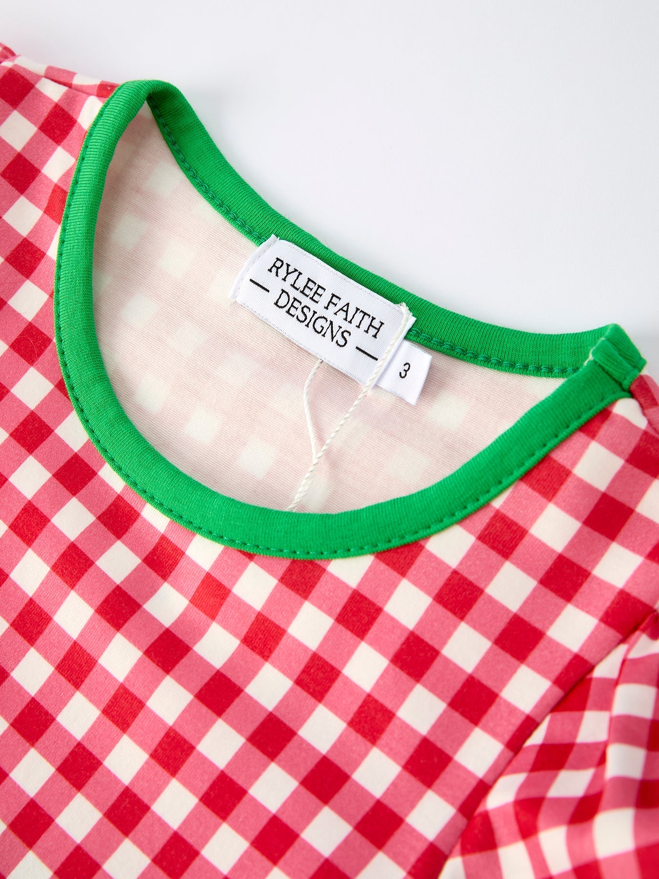 Make holiday dressing effortless and adorable with this Christmas Tree Applique Red Plaid Top paired with Green Bell Bottom Pants set for girls. The festive red plaid top features a charming Christmas tree applique that adds a joyful touch, while the vibrant green bell-bottom pants provide comfortable movement and a playful silhouette. Perfect for family gatherings or holiday photos, this set combines style and comfort to keep your little one merry and bright all season long.