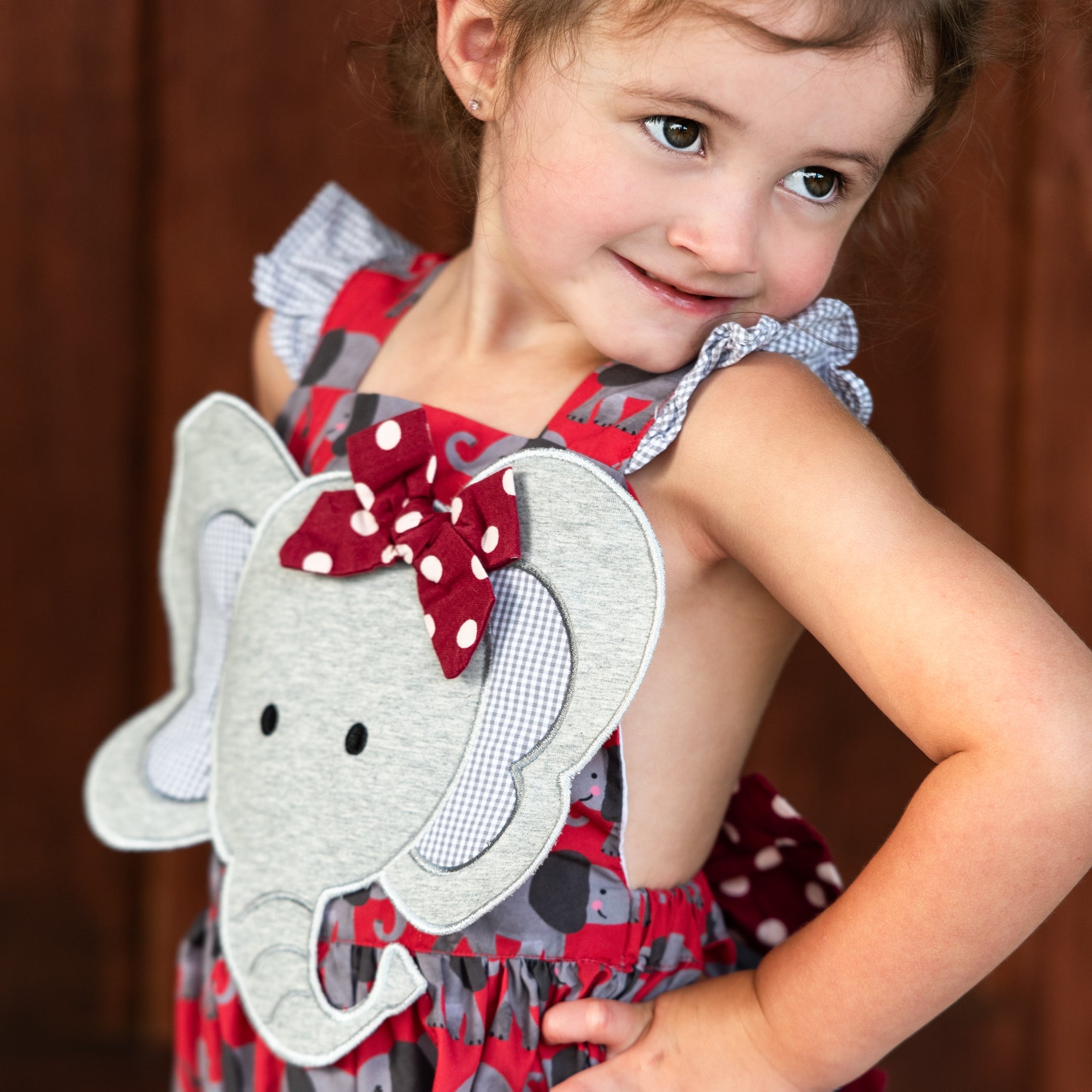 - oversize applique elephant on chest with real bow