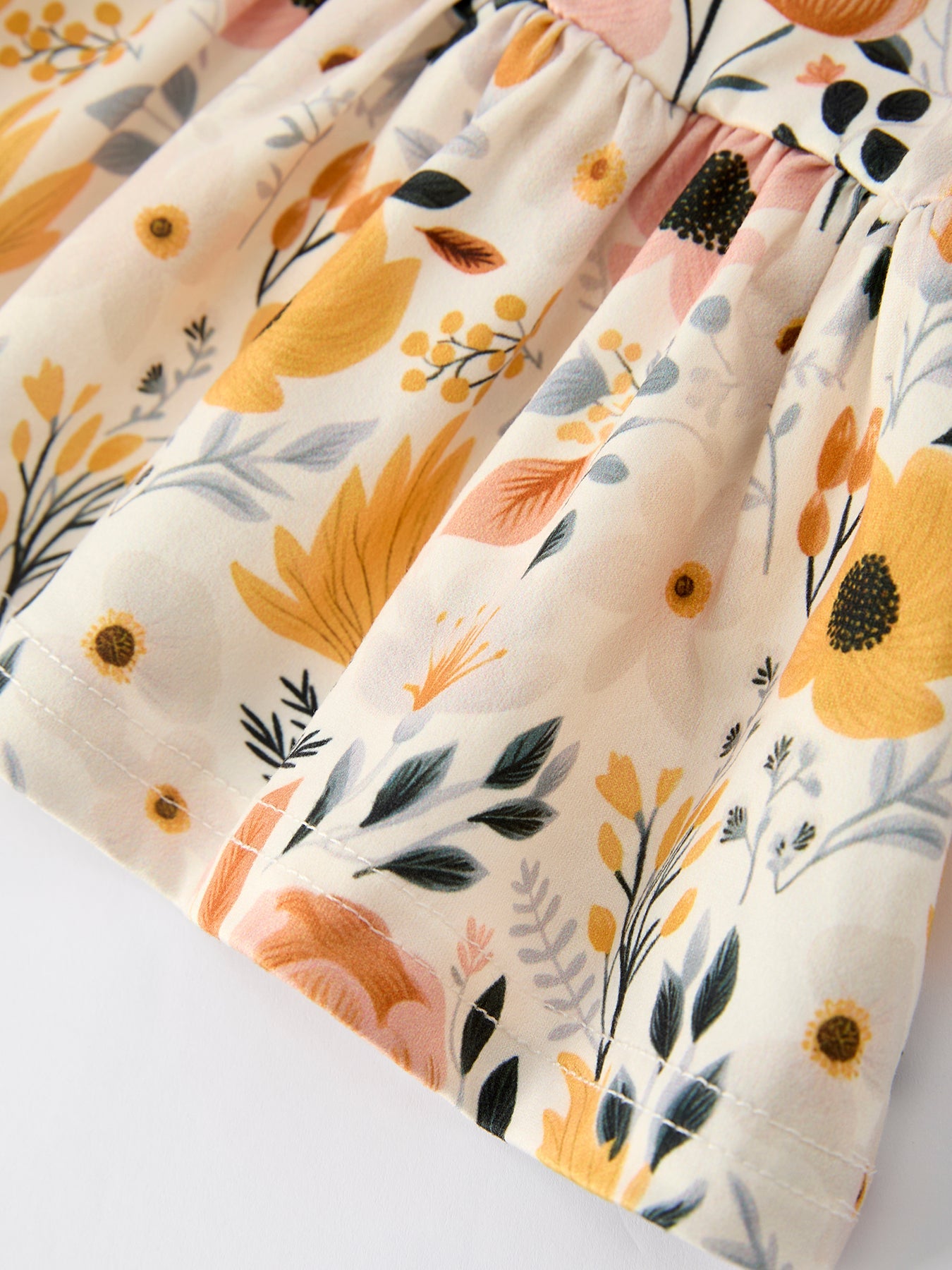 Fall Floral Print Baby Girls Long Sleeve Top with Ruffle Bloomers Set