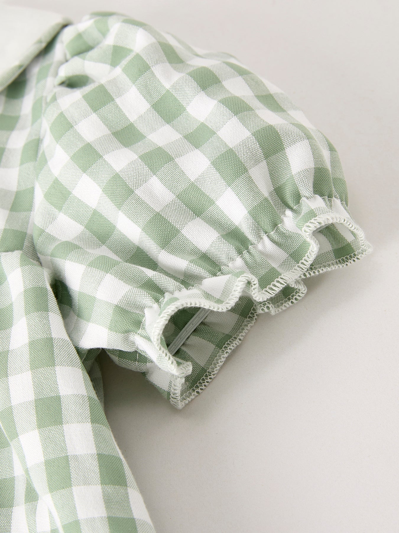 Celebrate the season in style with this charming green plaid dress, perfect for fall, Halloween, and Thanksgiving. Featuring delightful applique details, it adds a festive touch while keeping your little girl comfortable and cute. Ideal for family gatherings or seasonal photos, this dress combines classic plaid with playful accents to make every moment memorable.