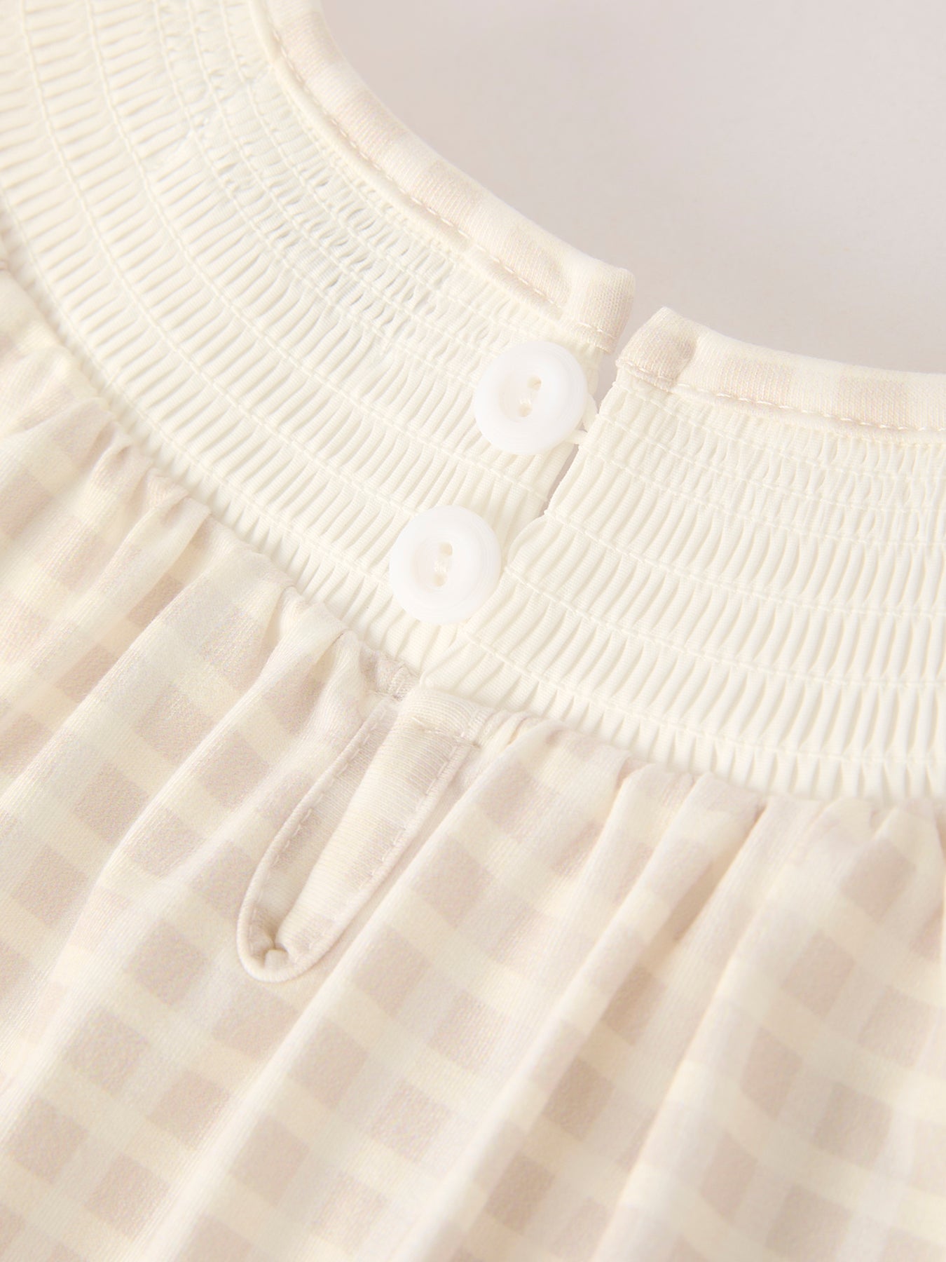 Celebrate the season in style with this charming baby girls dress featuring a warm apricot plaid pattern and delicate turkey embroidery. The smocked bodice adds a classic touch while ensuring a comfortable fit for your little one. Perfect for Thanksgiving gatherings, this dress combines festive design with soft, breathable fabric to keep your baby cozy and adorable all day long. Make holiday memories even sweeter with this timeless fall favorite.
