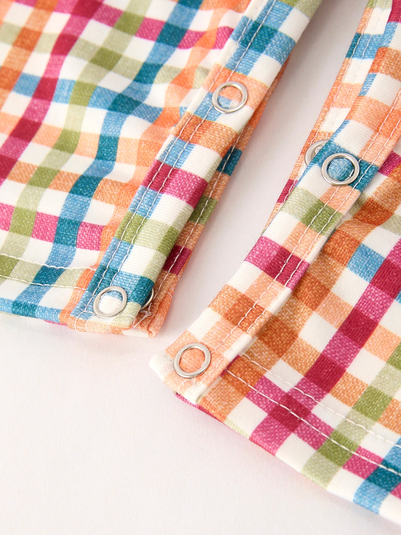 Fall Thanksgiving Color Plaid Chick Embroidery Smocking Baby Boys Romper