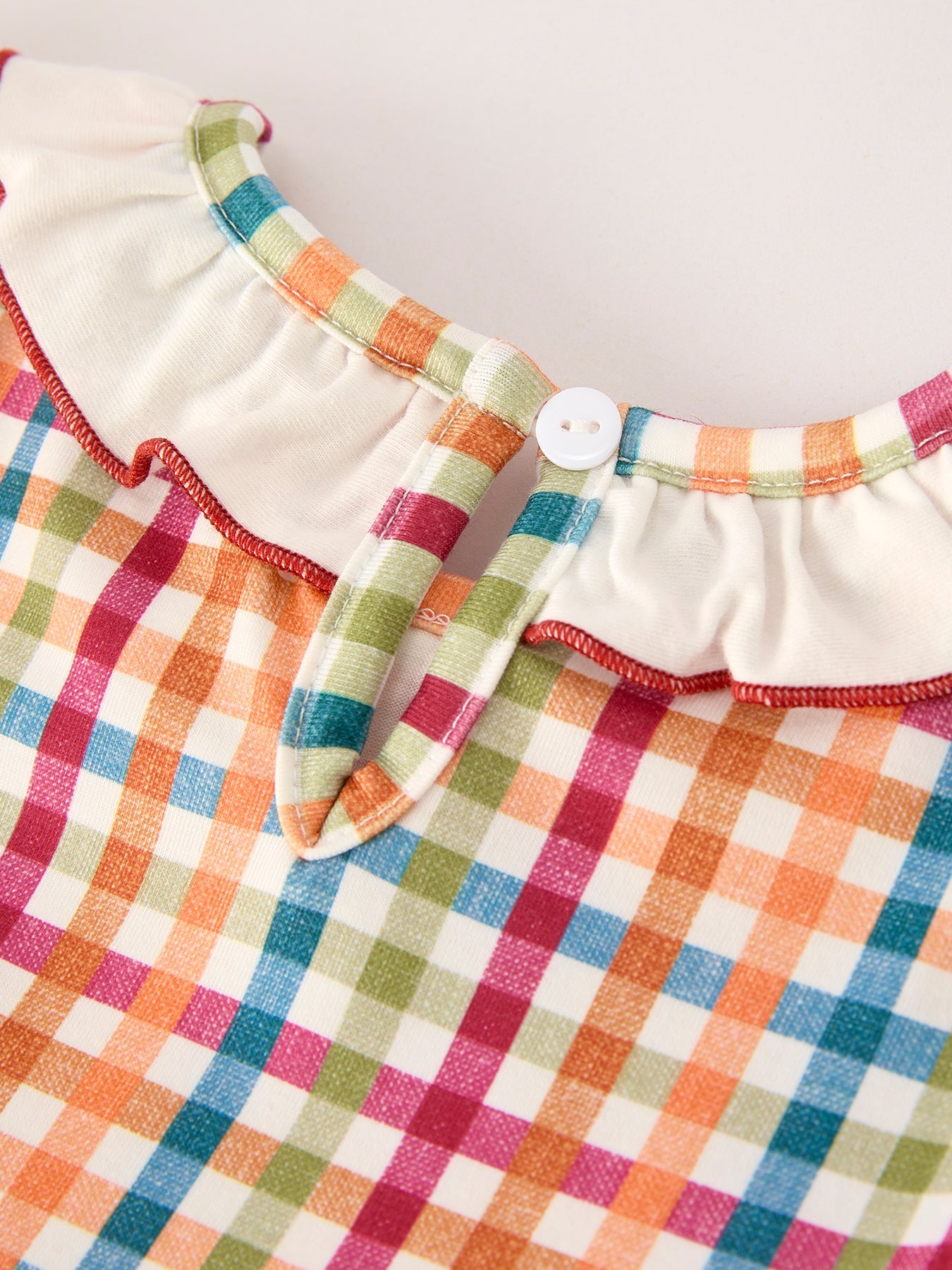 Celebrate the season in style with this charming Fall Thanksgiving Color Plaid Chick Embroidery Smocking Girls Dress. Featuring a cozy plaid pattern and delicate chick embroidery, this dress combines festive warmth with playful detail. The smocked bodice ensures a comfortable, flexible fit, perfect for all-day wear during holiday gatherings. Make your little girl’s Thanksgiving outfit both adorable and memorable with this beautifully crafted dress.
