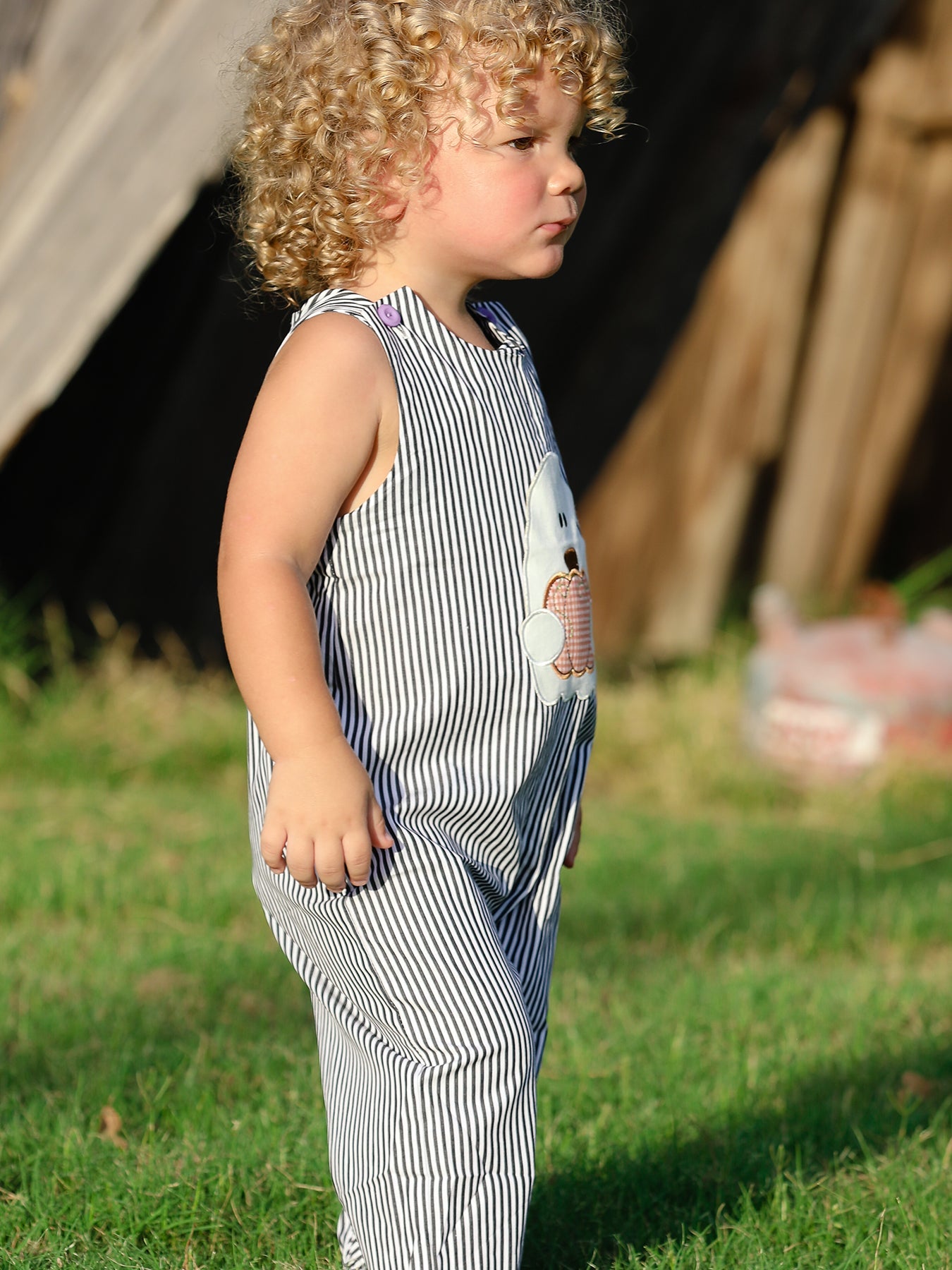 Halloween Striped Ghost Embroidered Baby Boys Romper
