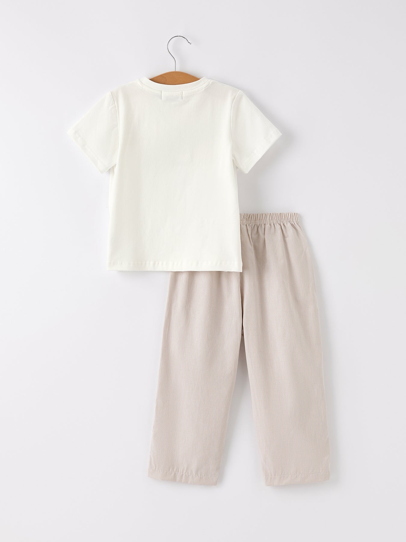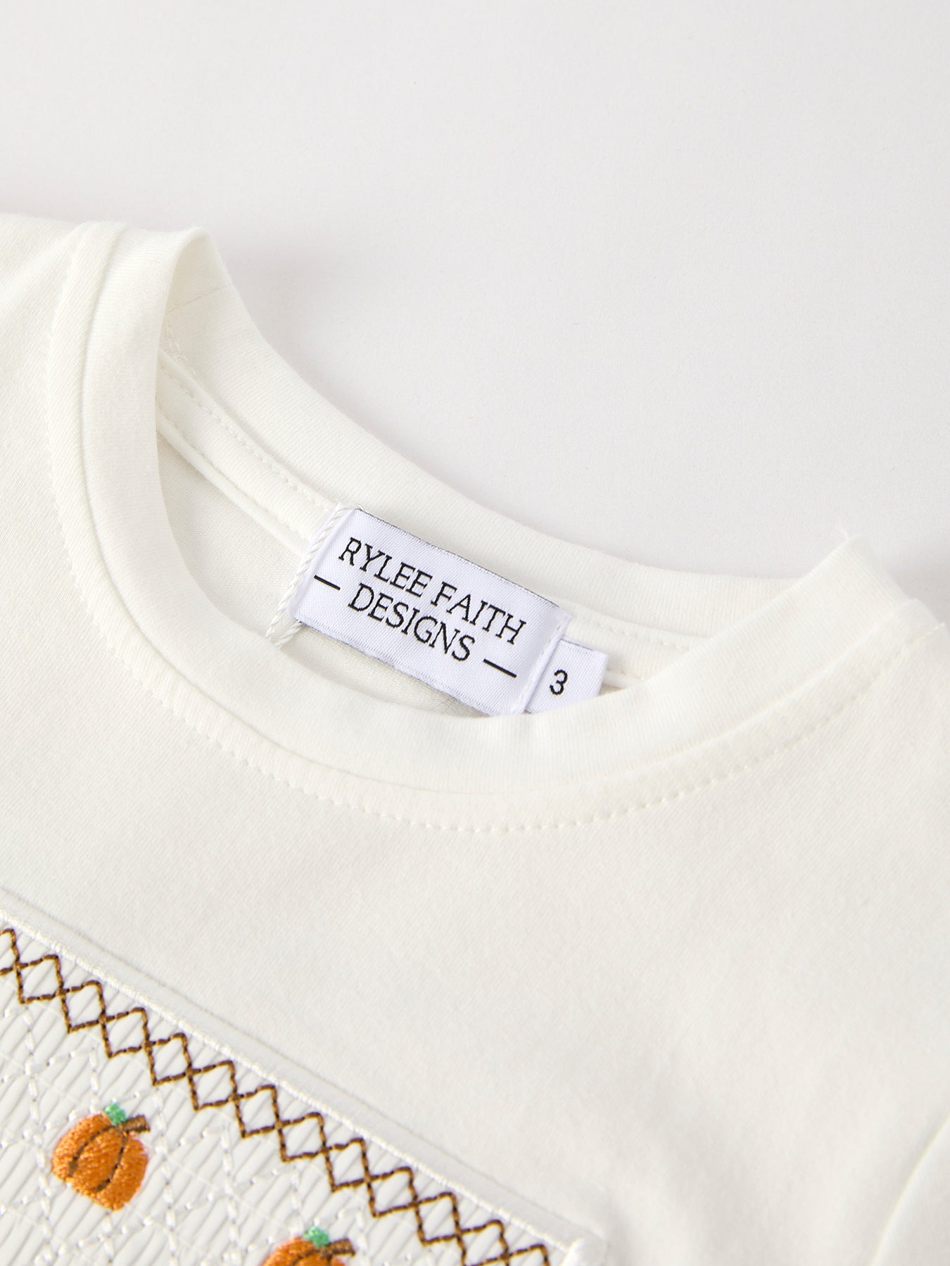 Dress your little one in seasonal charm with our Halloween & Thanksgiving Pumpkin Smock Set. This adorable boys' outfit features meticulously embroidered pumpkin details on classic plaid, perfect for fall festivities from spooky celebrations to family gatherings. The comfortable smocked design ensures both style and ease of movement, making it an irresistible addition to your child's autumn wardrobe.