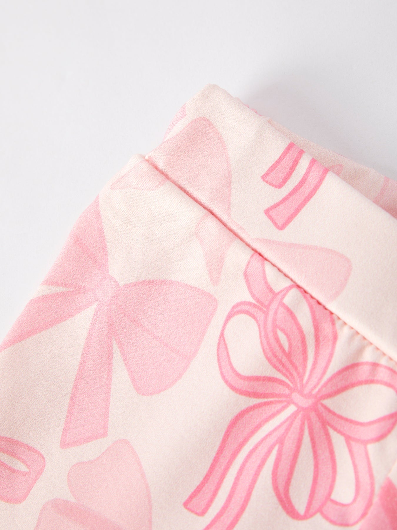 Pink Girls Top Bow Floral Print Bell Bottom Pants Set