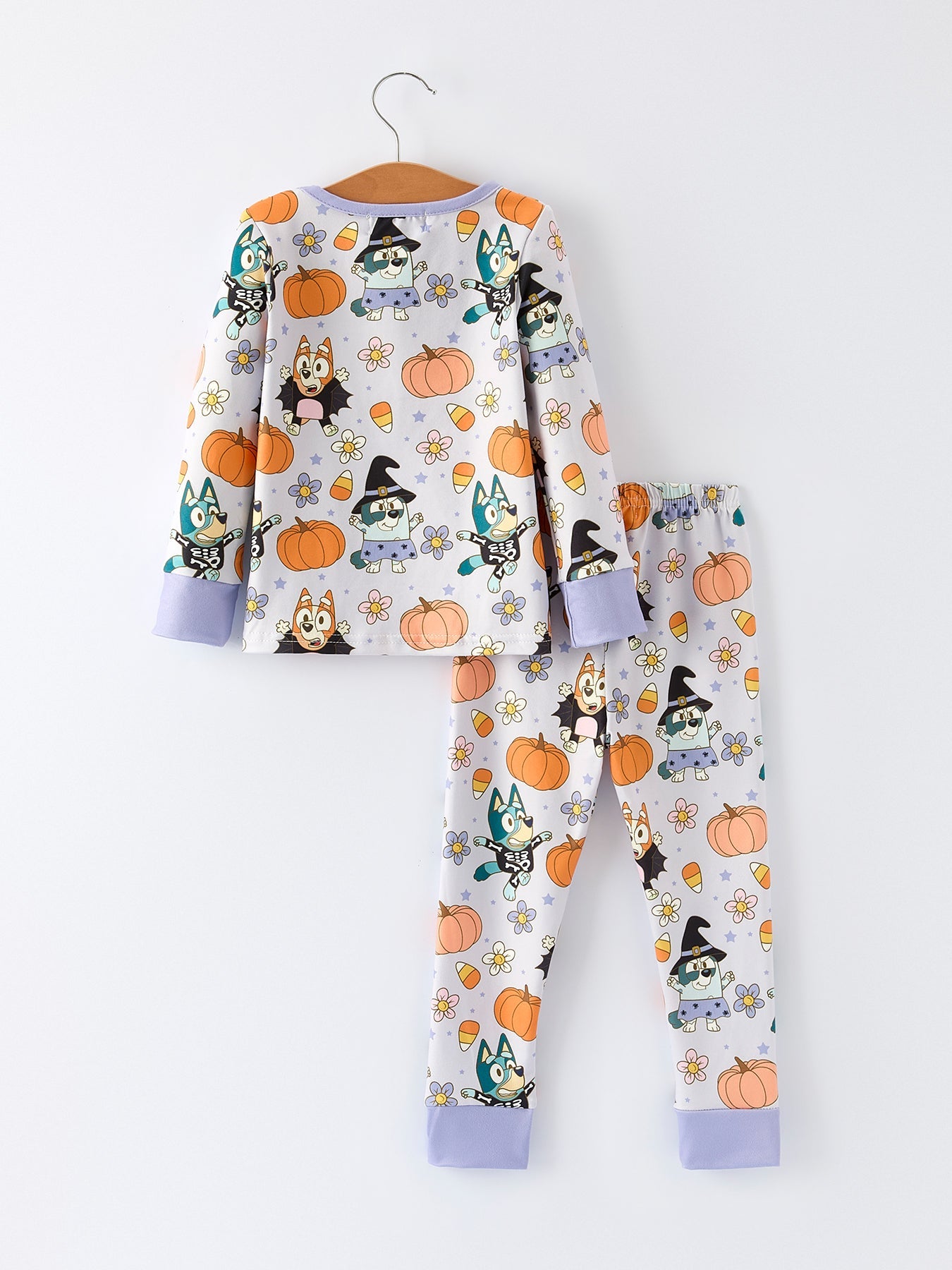 Keep your little one cozy and festive with this Purple Halloween Character Print Girls Pajama Set. Made from soft, breathable fabric, it ensures comfort through the night while featuring playful Halloween-themed characters that add fun to bedtime. Perfect for celebrating the season in style and encouraging a cozy, cheerful bedtime routine.