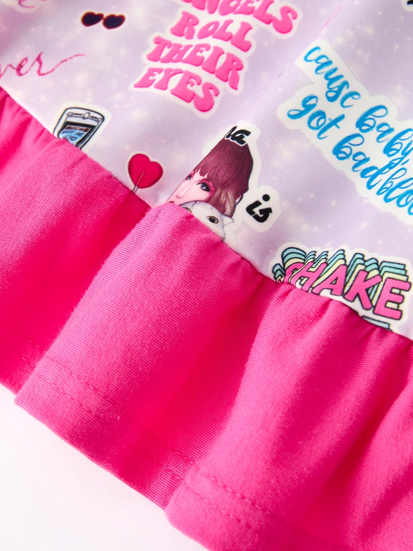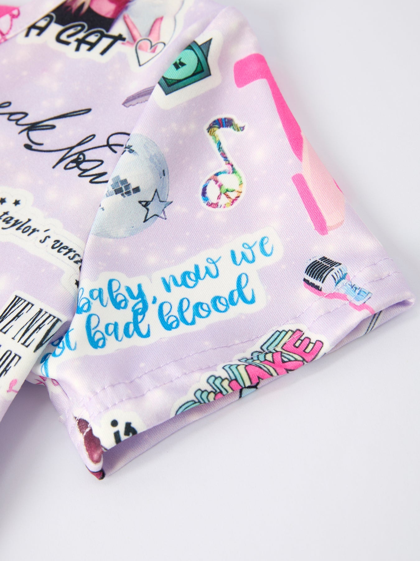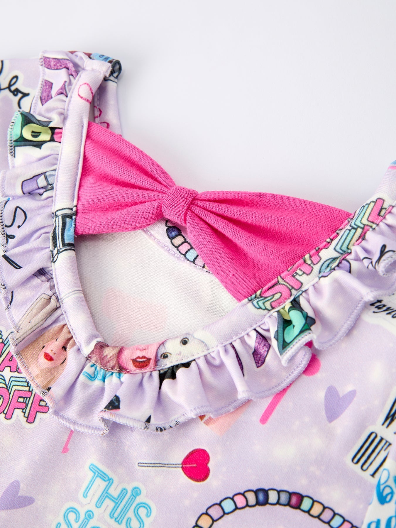 Purple TS Print Ruffle Girls' Short Sleeve Dress