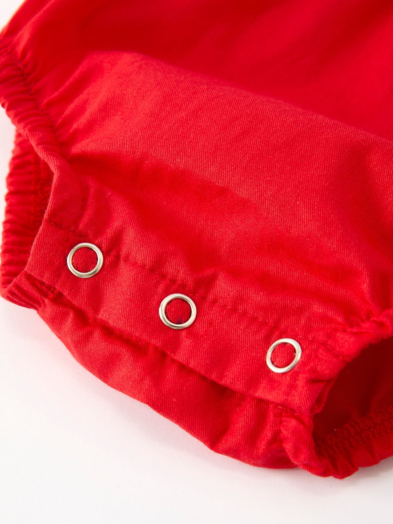 Red Christmas Baby Girls Romper: Cross Embroidery with Lace Trim