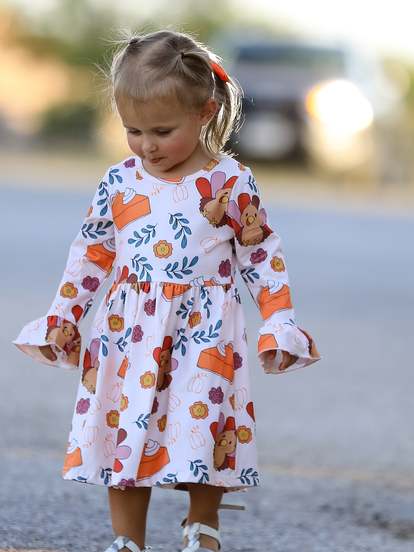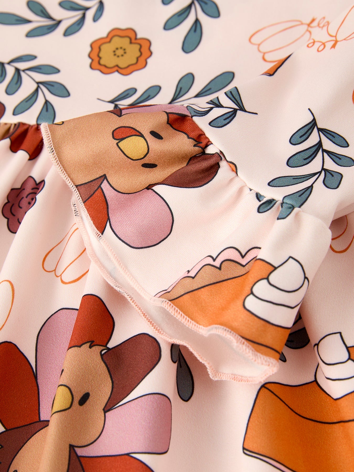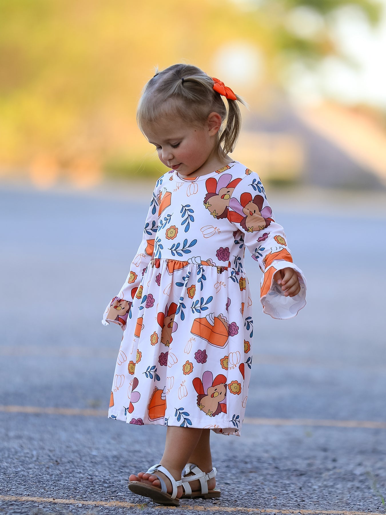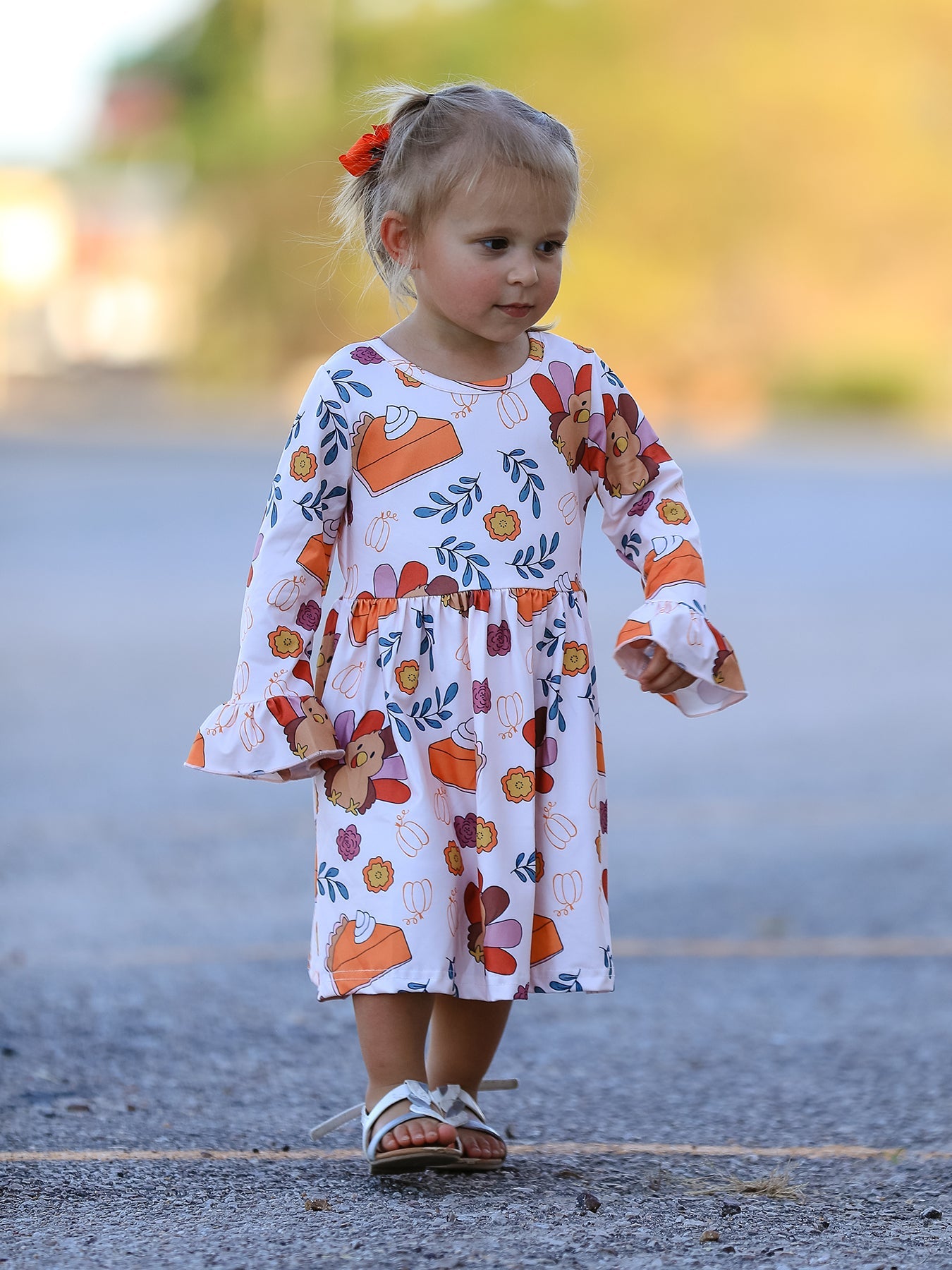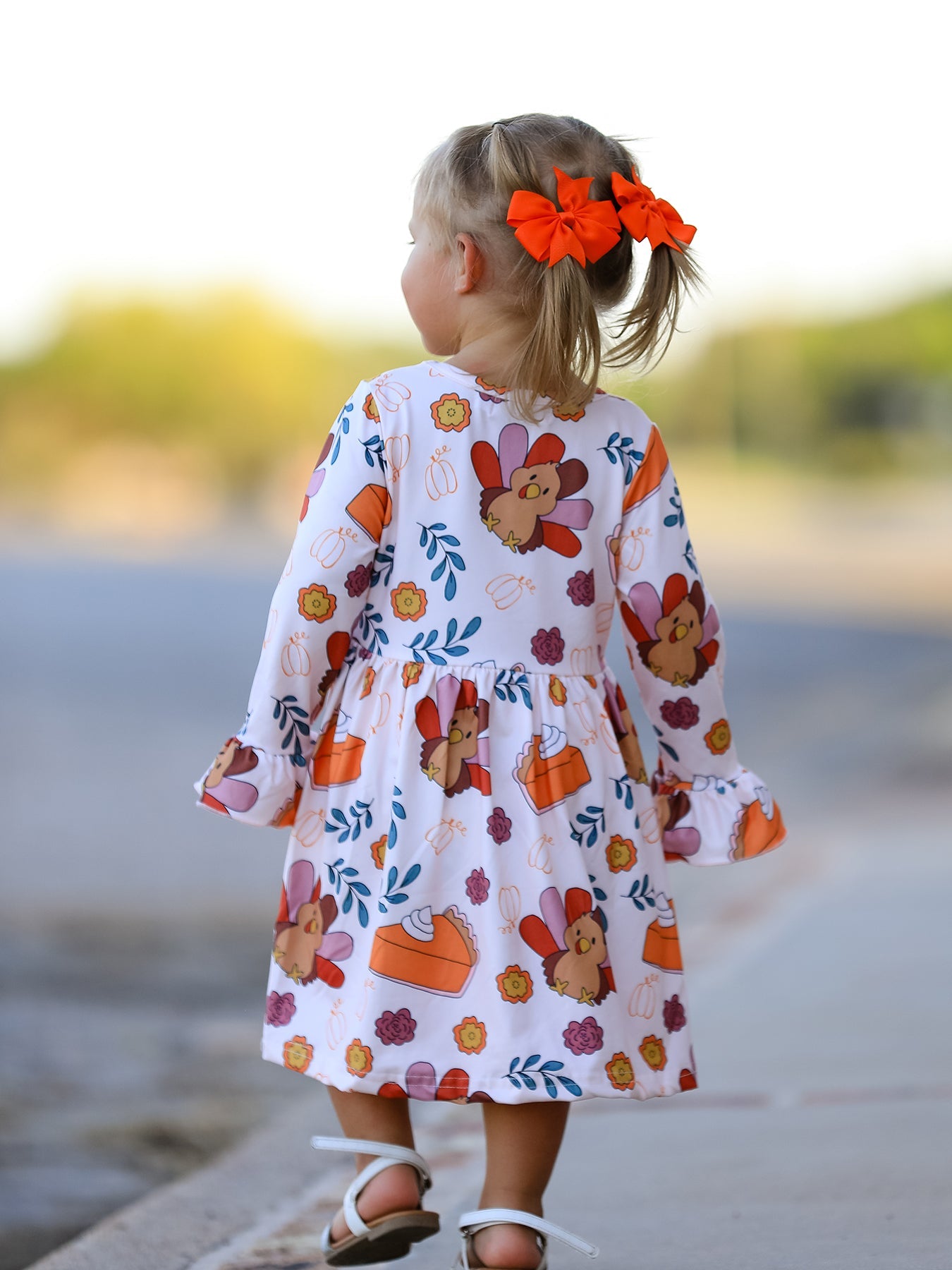 Thanksgiving Cute Turkey And Pie Print Design Girls Dress