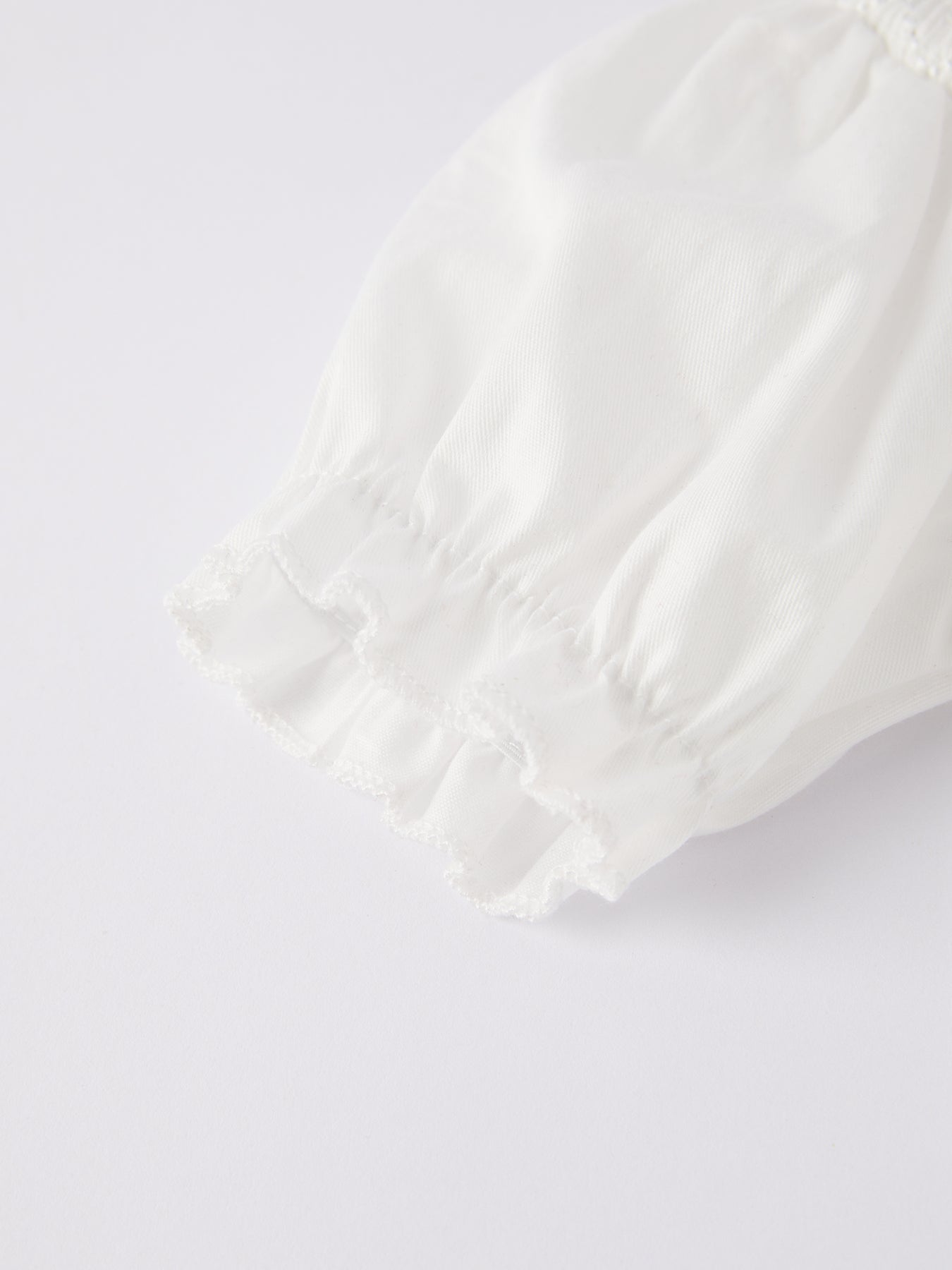 Be inspired by the beauty and grace of our White Smocked Church Christ Bishop Christening Girls Romper. Made with exquisite smocked detailing, this romper exudes elegance fit for a special day. Perfect for baptisms and christenings, it will keep your little one comfortable and stylish.